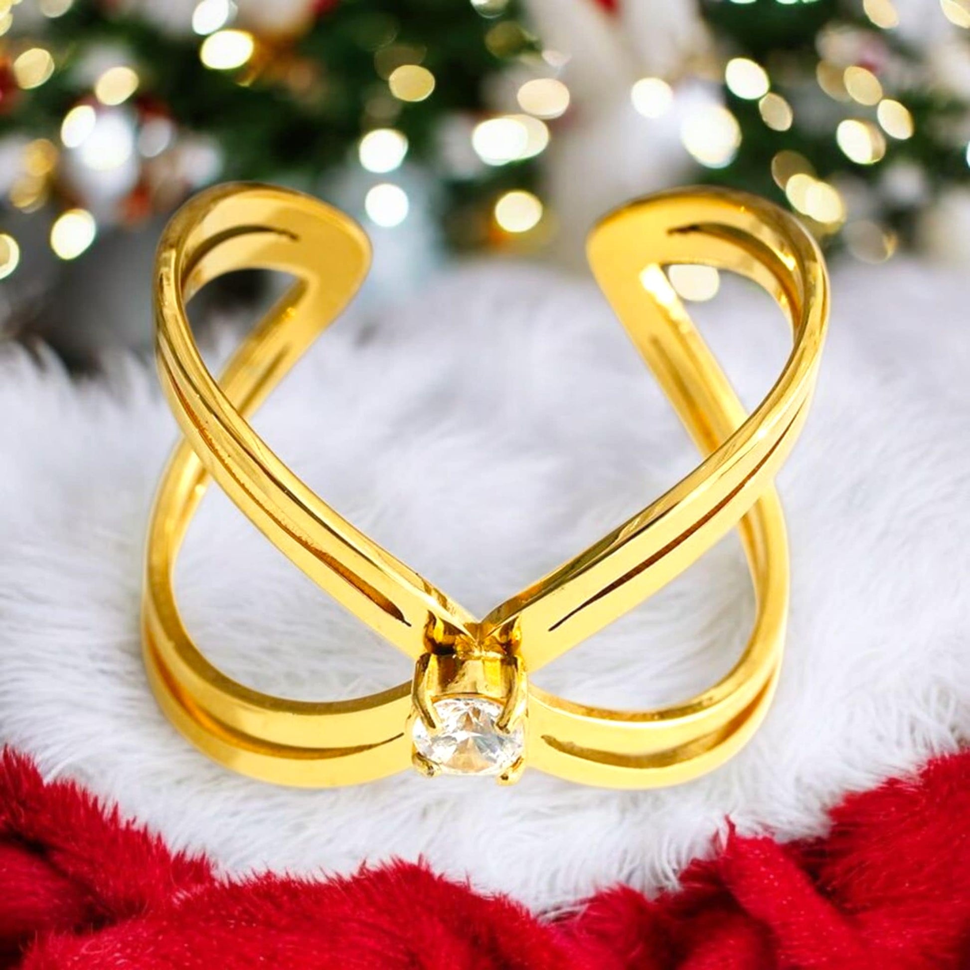 Bague Dorée Ouverte Large Creuse Fils En Croix Avec Strass