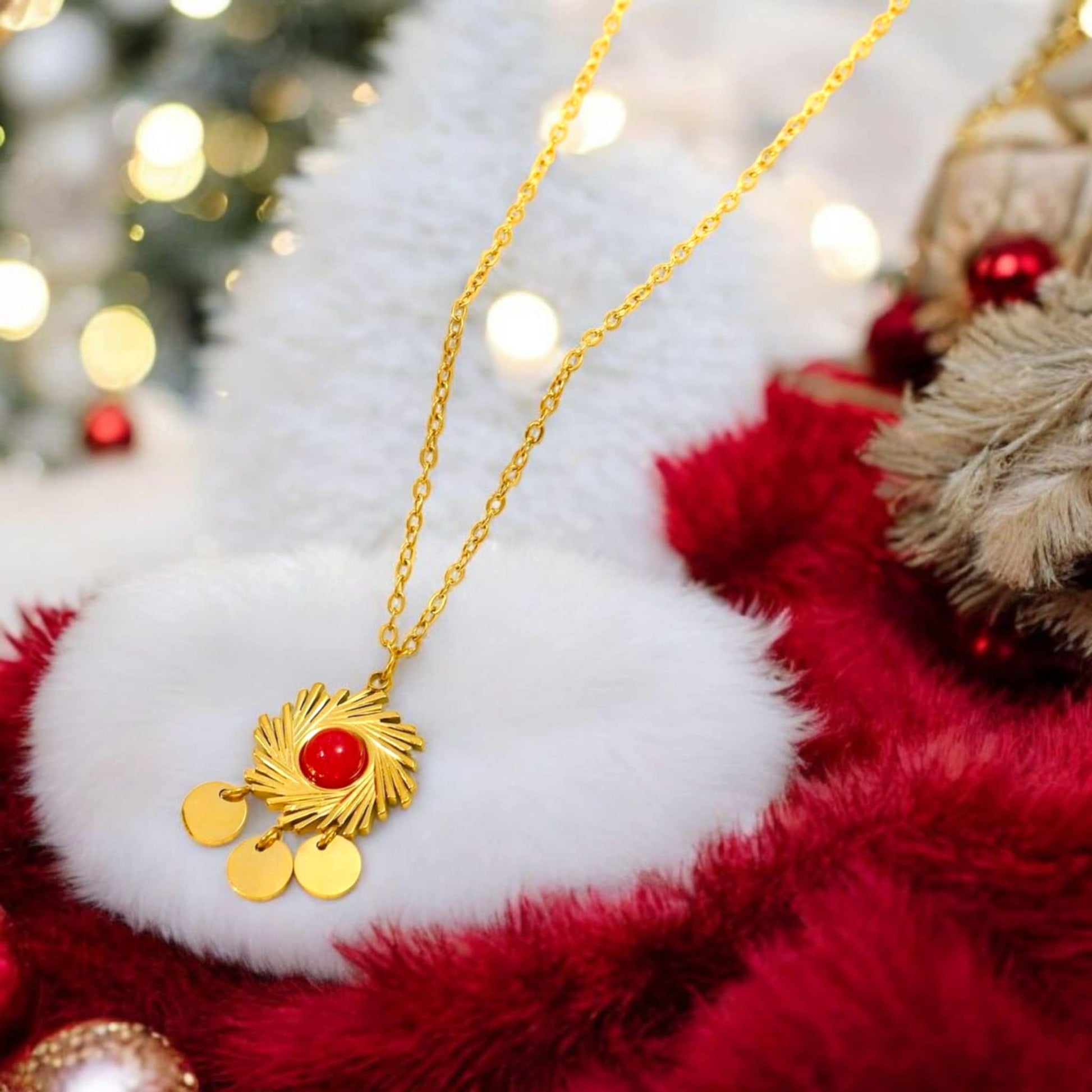 Ce collier doré, orné d’un pendentif soleil et d’une pierre naturelle rouge, allie élégance et durabilité. Fabriqué en acier inoxydable, il résiste à l’eau et au temps, vous accompagnant au quotidien sans perdre son éclat. Un choix parfait pour illuminer votre style avec une touche chaleureuse et authentique.